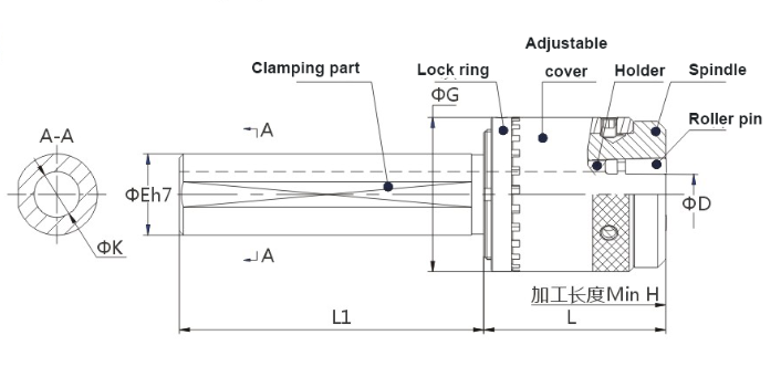 JC-WS series tools are more suitable for use on machine tools which length limitation, and the tool can burnish diameter Φ3-14mm. When the diameter of the clamping handle is enough, the machining length will be unlimited because the inner hole of the clamping handle is larger than the workpiece size.